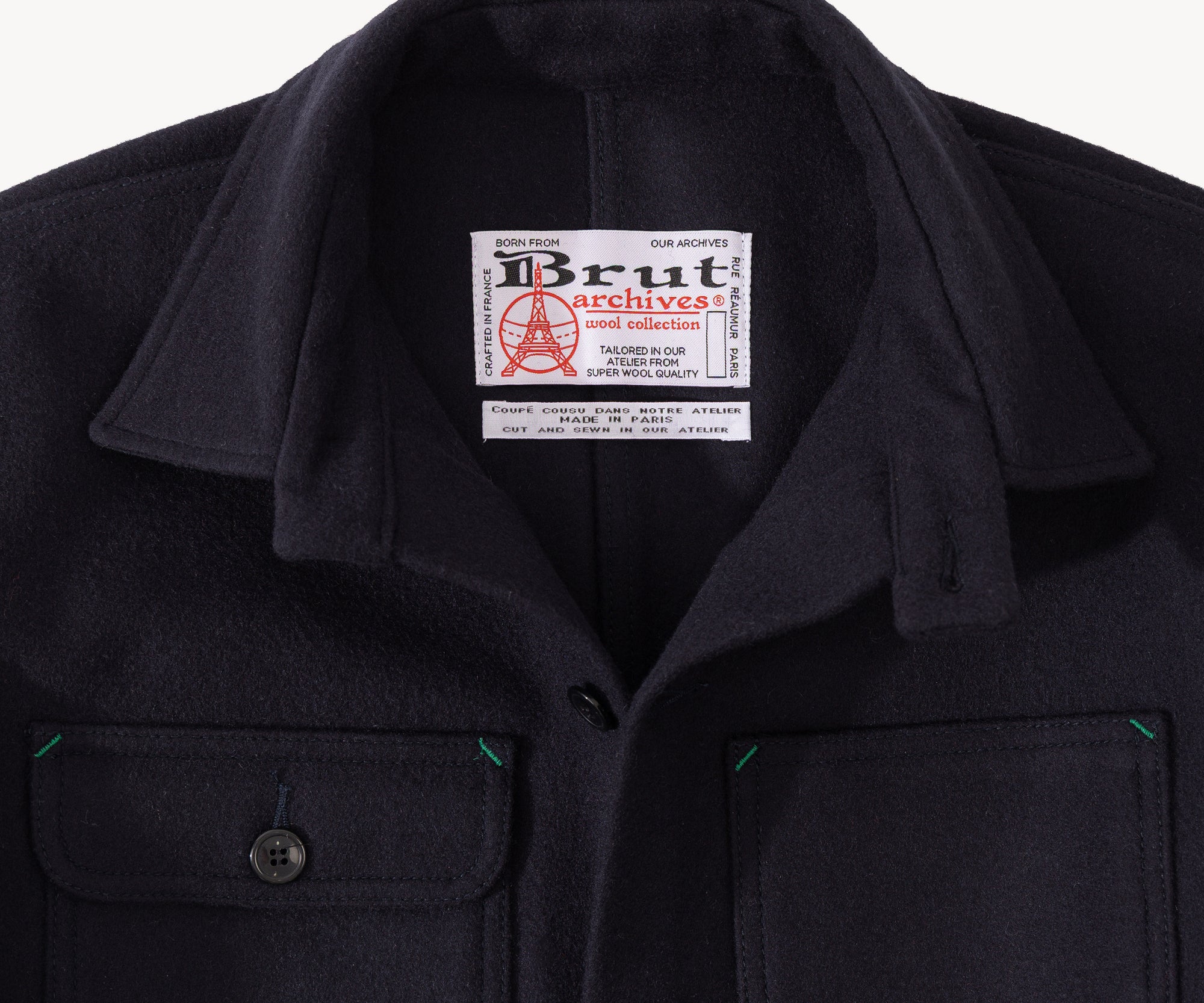 80% wool, 20% viscose. This piece is carefully handmade on vintage equipment in our Parisian atelier. Made in France.