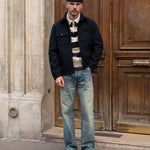 80% wool, 20% viscose. This piece is carefully handmade on vintage equipment in our Parisian atelier. Made in France.