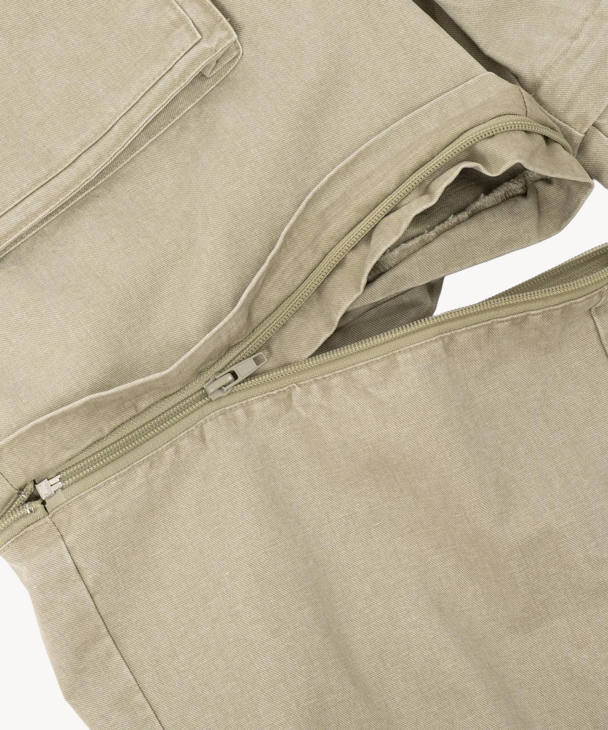 Convertible design with zip-off legs at the thighs to turn the pants into shorts.